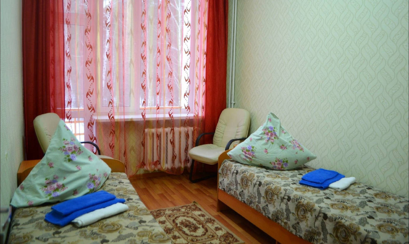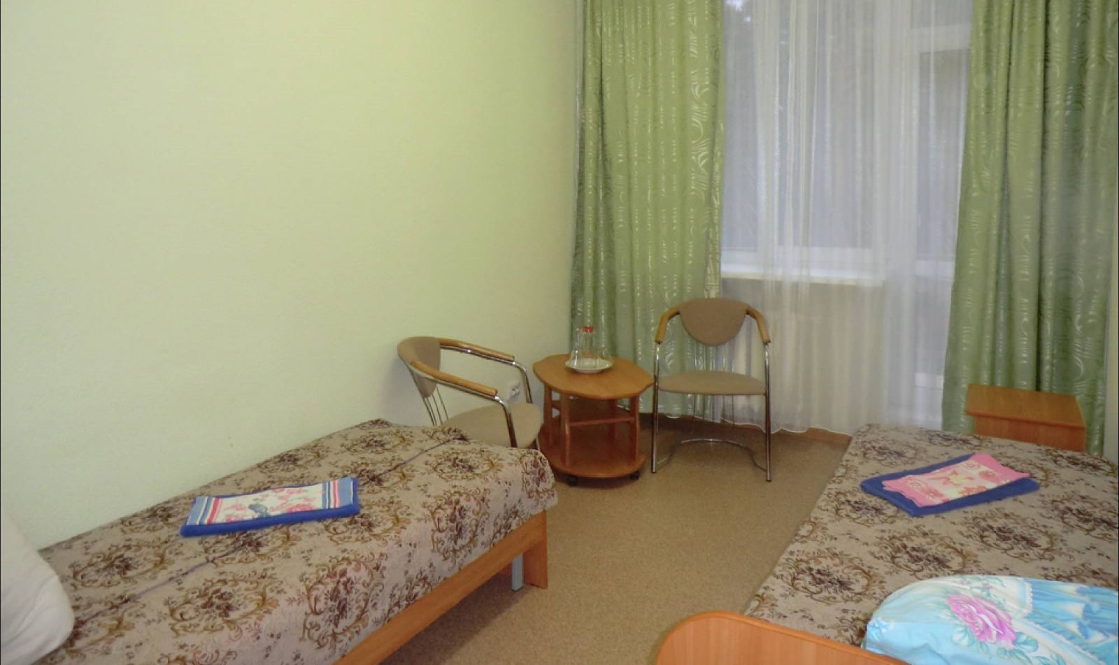 2 осн. места. Мебель: кровати односпальные, стол, стулья, шкаф. Оборудование. Санузел на блок. Сервис: смена полотенец, смена постельного белья, уборка номера.